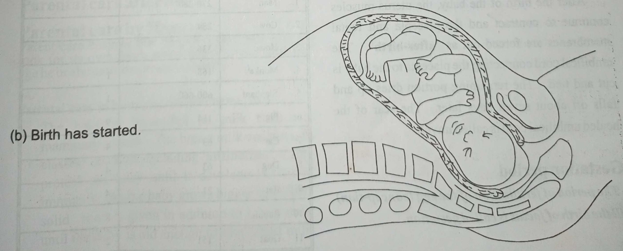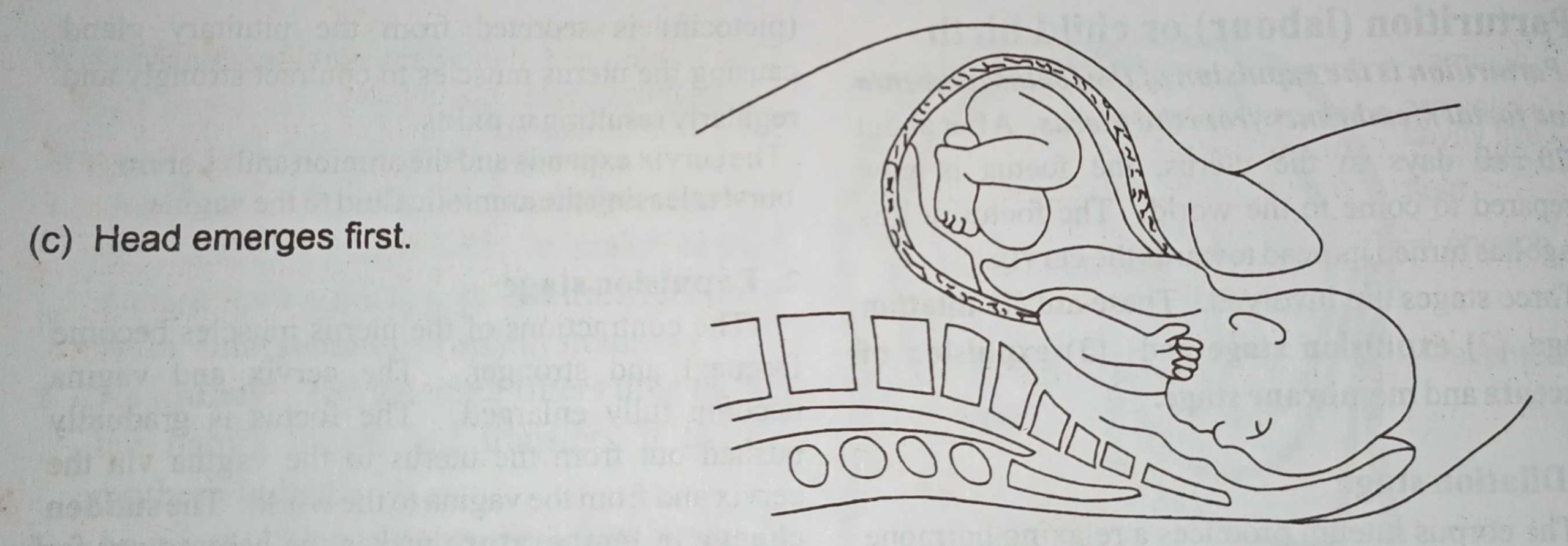 Parturition (labour) is the expulsion of the foetus, placenta and foetal membranes from the uterus. After about 270-280 days in the uterus, the foetus is now prepared to come to the world. The foetus at this stage has turned its head towards the cervix.