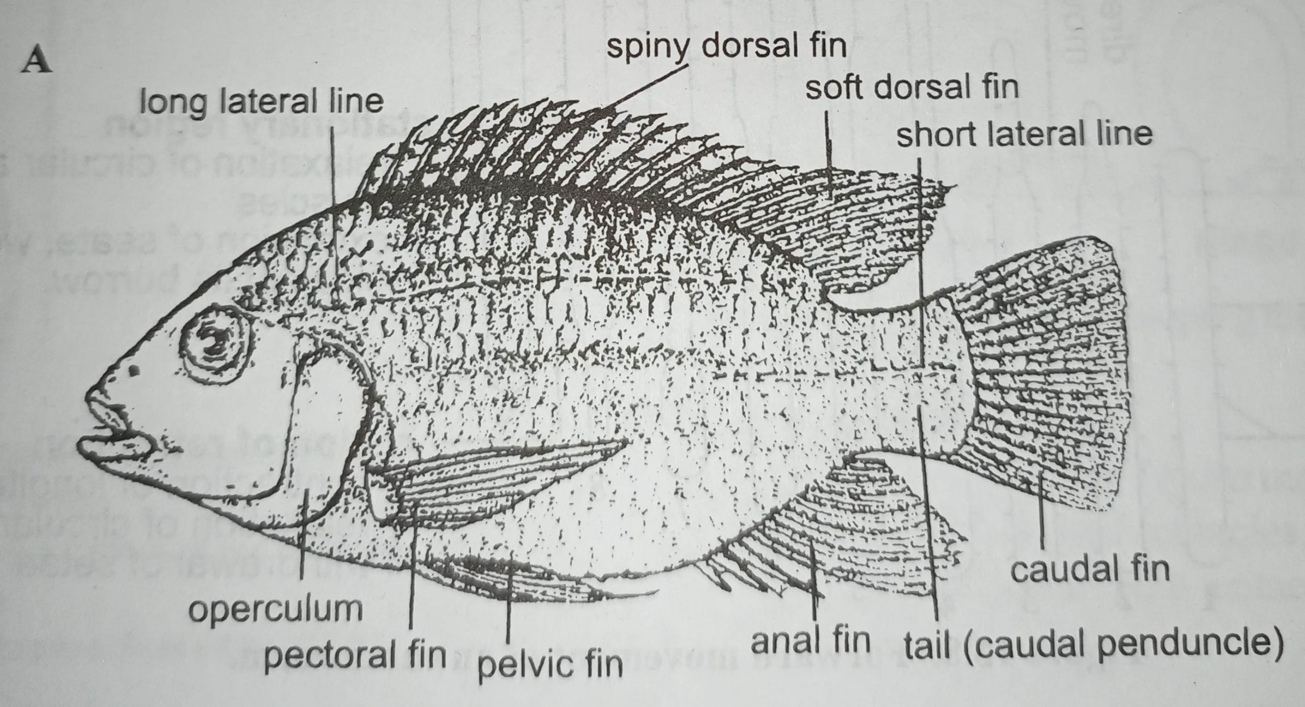 In a compact fish like tilapia, it is the penducle (tail stalk) that lashes from side to side providing most of the forward movement. In slender fish such as African spiny eel and Erpetoichithys calabaricus (sail fish) the whole body bends from side to side creating two or more curved areas that help to push water backward, thus providing forward movement.