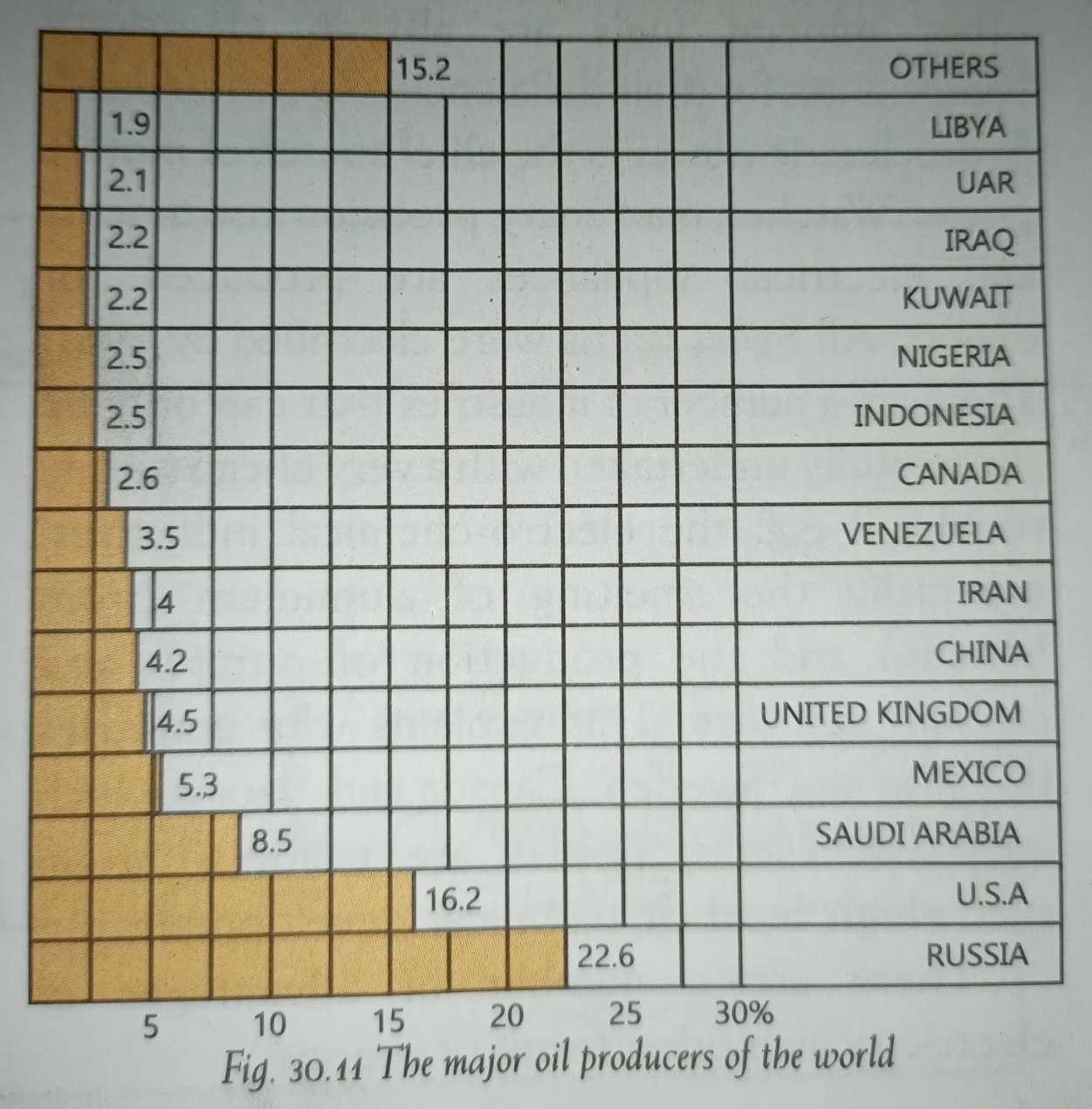 Although over two-thirds of the world’s oil reserves are estimated to be in the Middle East, the present major oil-producing countries are the Russia and the USA. The Russia with 23 percent of world production is the greatest oil nation. The oldest oil wells are located in the Caucasus region of which the Baku fields are the most productive. Fresh sources are being exploited around the Urals, the Caspian Sea, the Russian Turkestan and Siberia. The oil reserves of Siberia are said to be enormous and the exploitation of this oil is responsible for the Russia’s rise to prominence in world crude oil production.