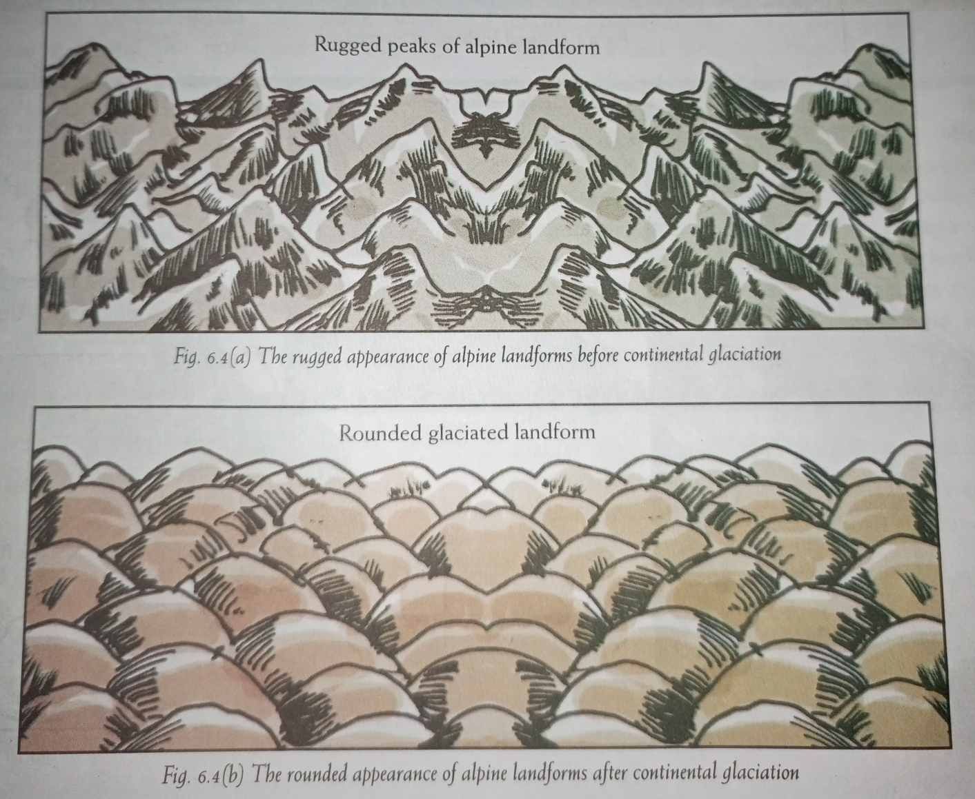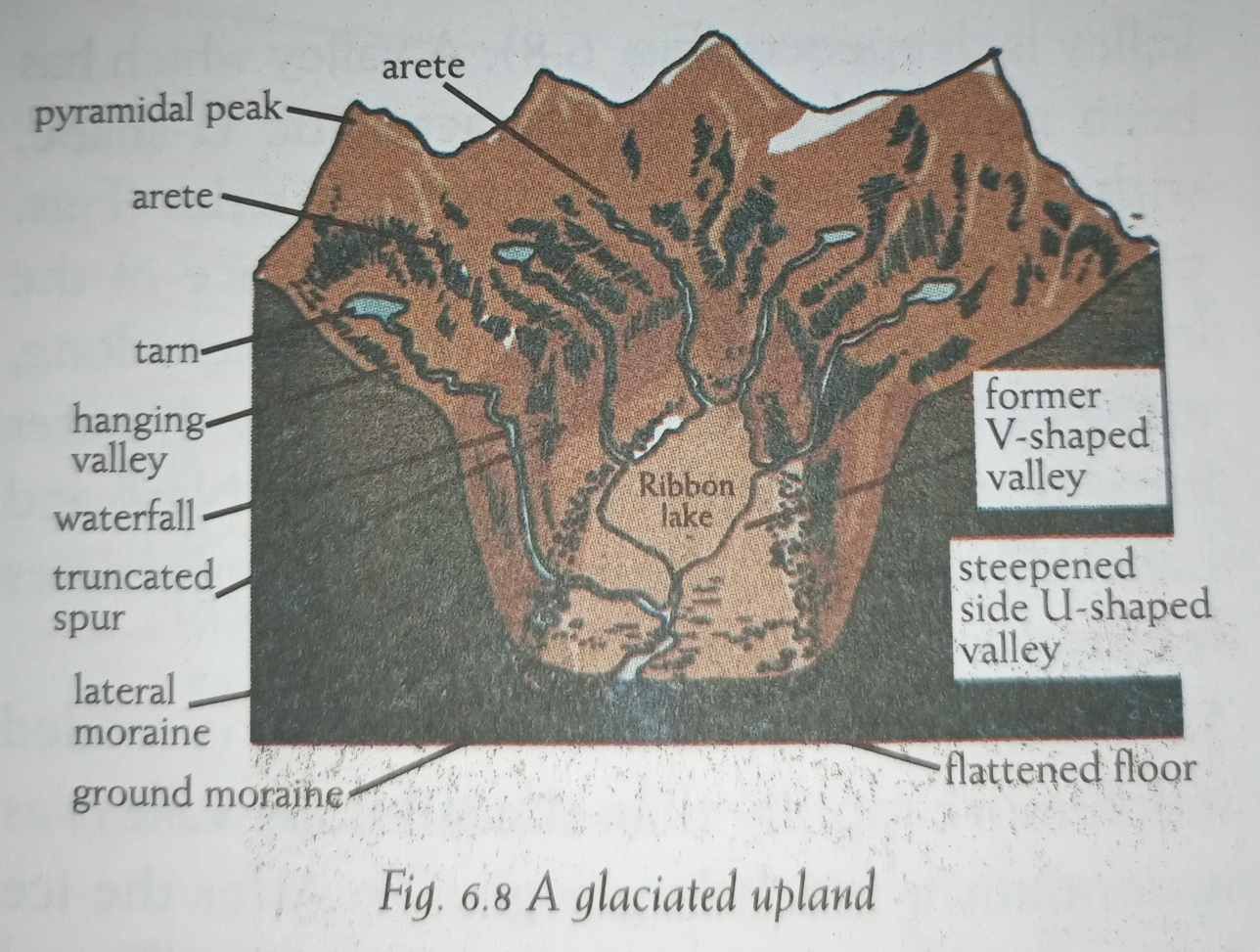 The characteristic features of a glaciated highland are as follows: