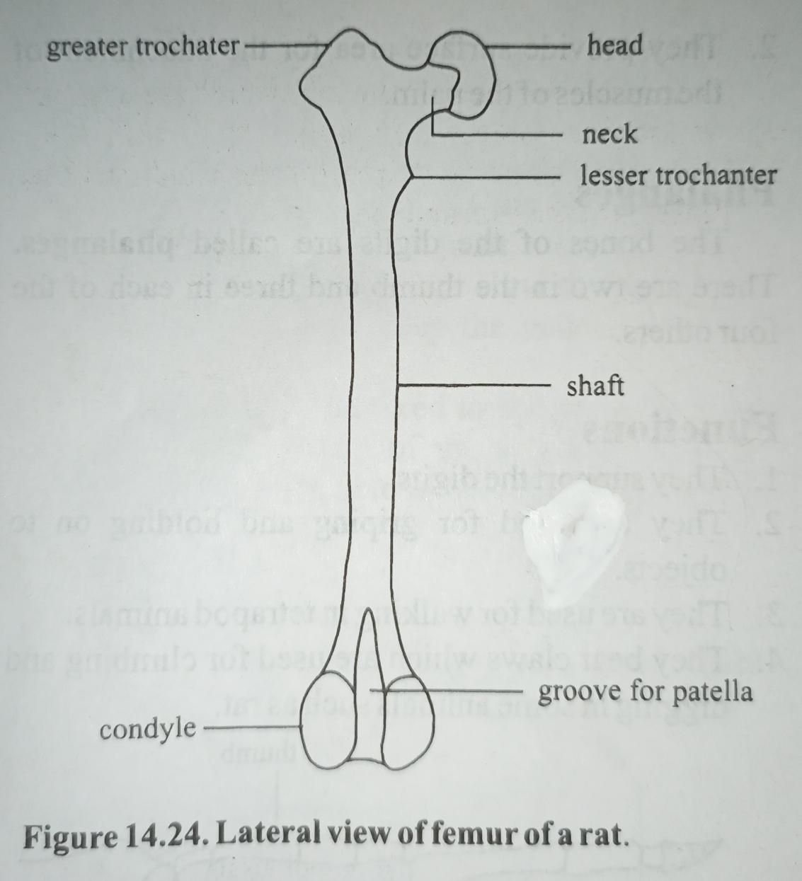 - Femur forms a ball and socket joint with the ilium allowing the free movement of the hind limb.